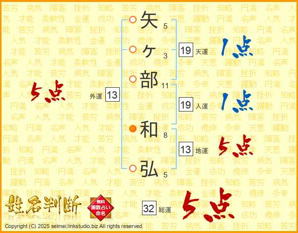 矢(5画)ヶ(3画)部(11画) 和(8画)弘(5画)