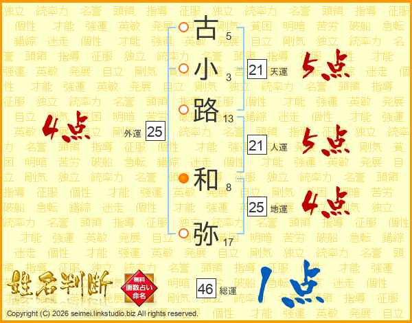 古小路和弥さんの総運は46画の1点!