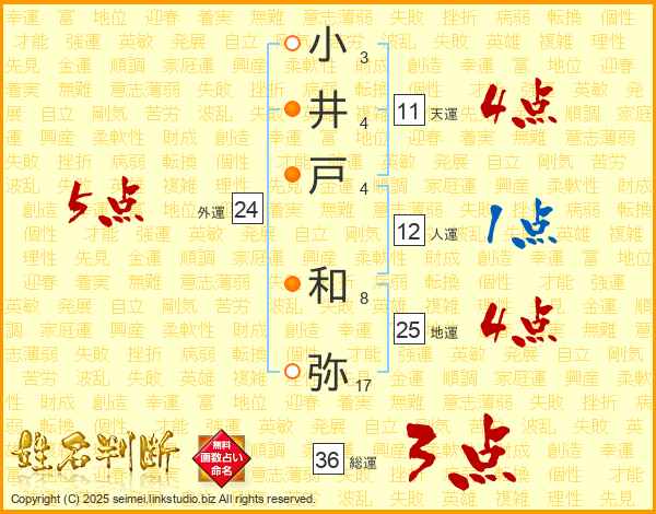 小(3画)井(4画)戸(4画) 和(8画)弥(17画)
