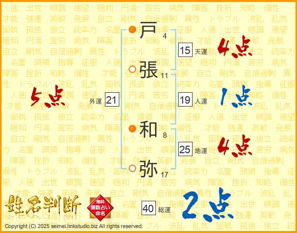 戸張和弥さんの地運は25画の4点!