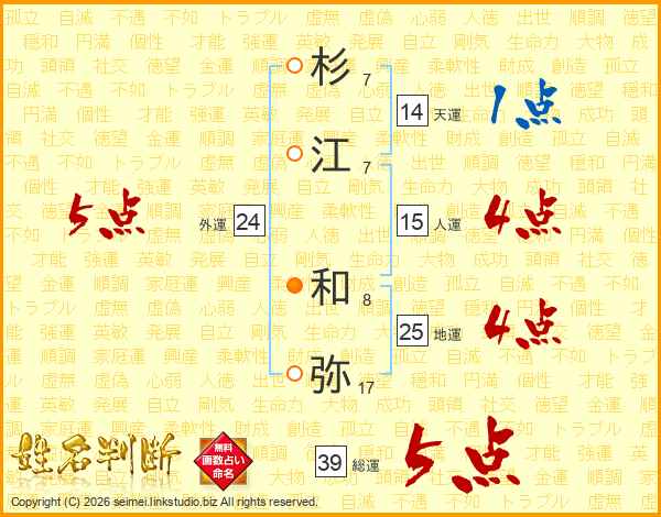 杉江和弥さんの総運は39画の5点!