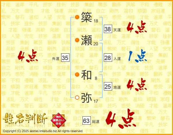 簗瀬和弥さんの総運は63画の4点!
