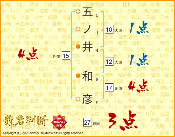 五ノ井和彦さんの総運は27画の3点!