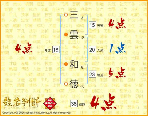 三雲和徳さんの総運は38画の4点!