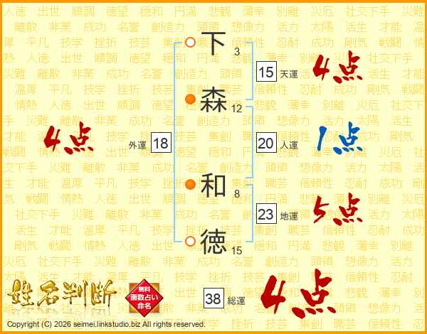 下森和徳さんの総運は38画の4点!