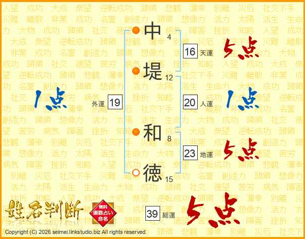 中堤和徳さんの総運は39画の5点!