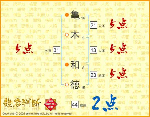 亀本和徳さんの天運は21画の5点!