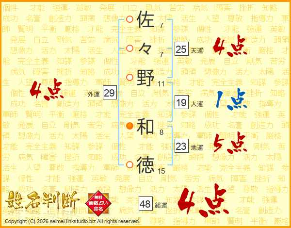 佐々野和徳さんの天運は25画の4点!