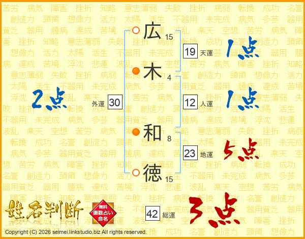 広木和徳さんの総運は42画の3点!
