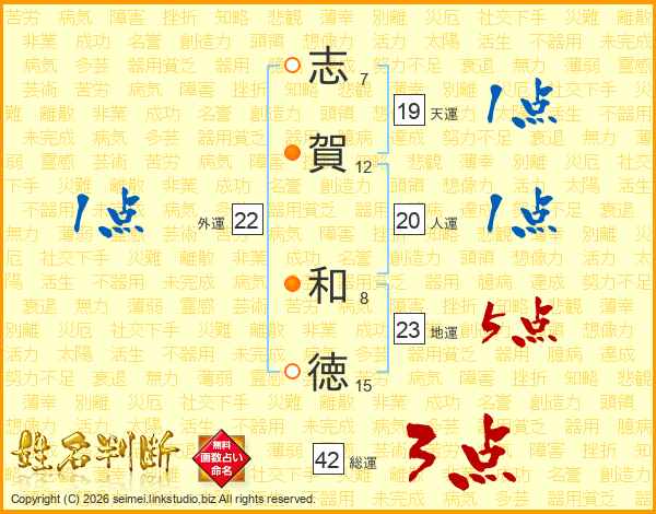 志(7画)賀(12画) 和(8画)徳(15画)