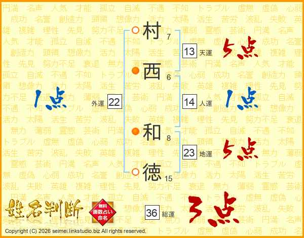 村西和徳さんの総運は36画の3点!