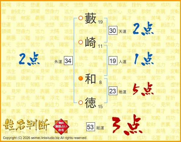 藪崎和徳さんの総運は53画の3点!