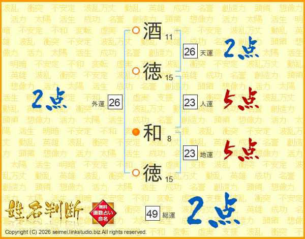 酒(11画)徳(15画) 和(8画)徳(15画)
