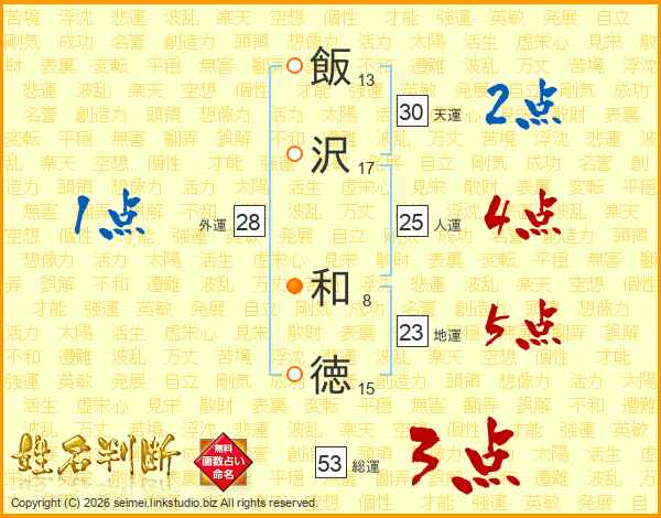 飯沢和徳さんの総運は53画の3点!