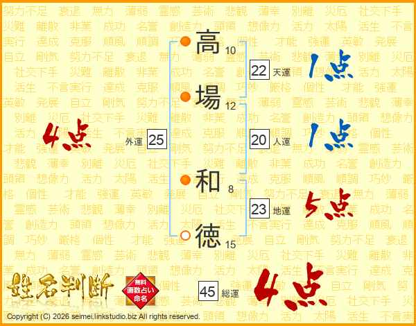 高場和徳さんの総運は45画の4点!