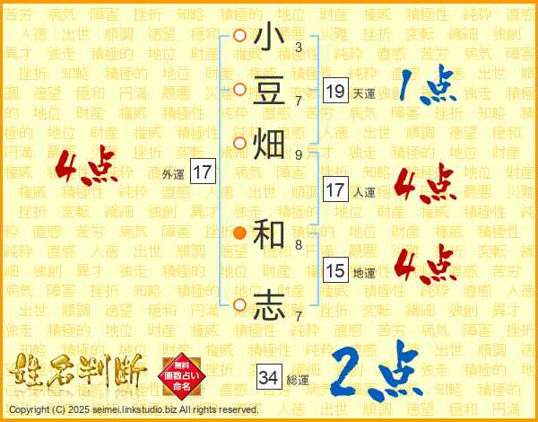 小(3画)豆(7画)畑(9画) 和(8画)志(7画)