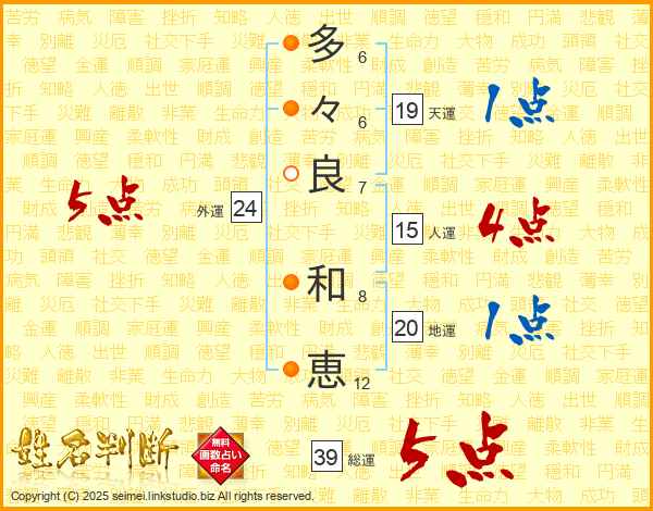 多々良和恵さんの総運は39画の5点!