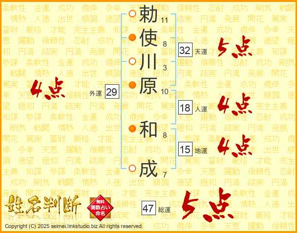 勅使川原和成さんの総運は47画の5点!