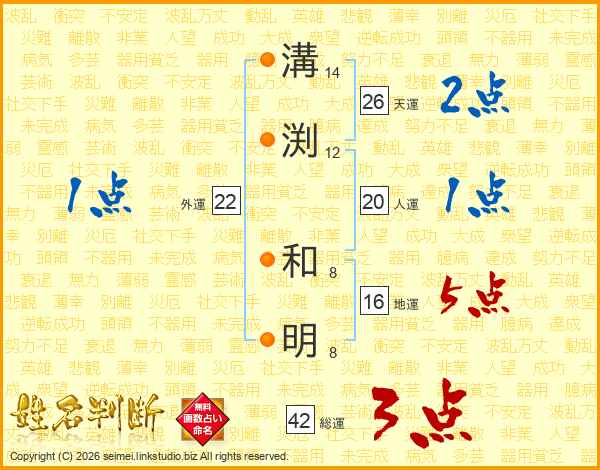 溝渕和明さんの天運は26画の2点!