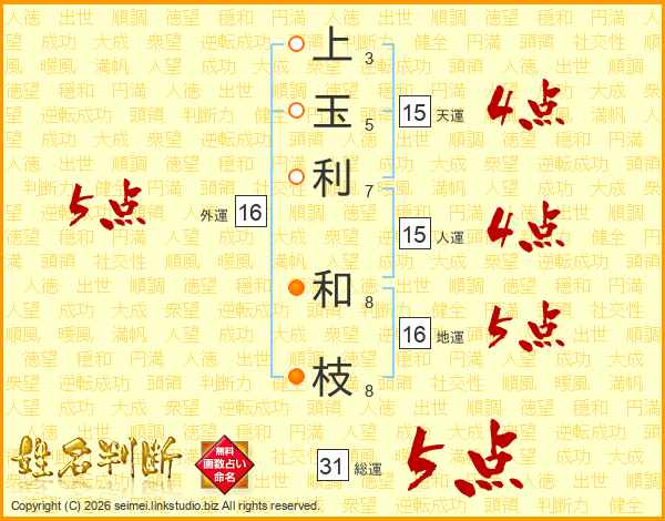 上玉利和枝さんの総運は31画の5点!