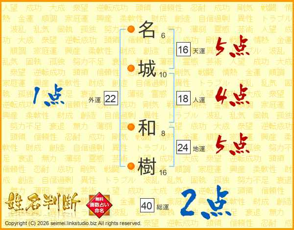 名城和樹さんの総運は40画の2点!