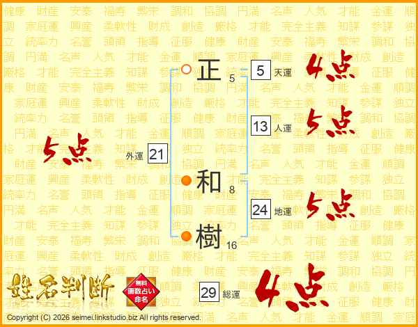 正和樹さんの総運は29画の4点!