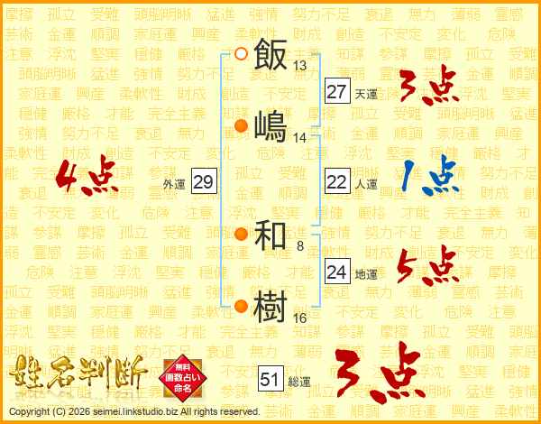 飯嶋和樹さんの総運は51画の3点!