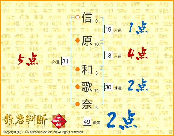 信原和歌奈さんの総運は49画の2点!
