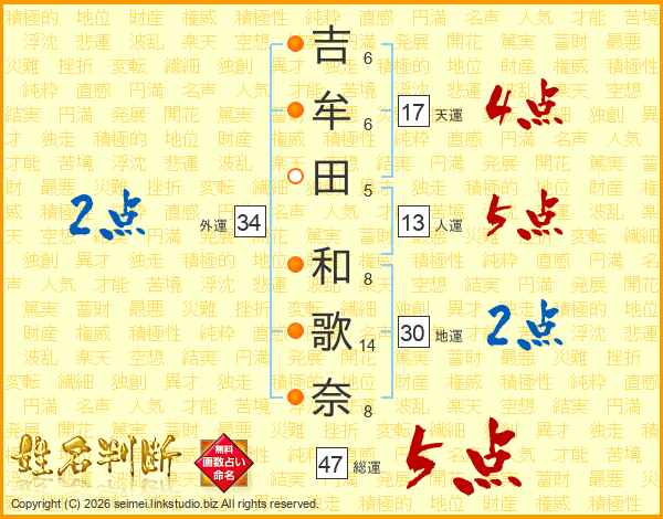 吉牟田和歌奈さんの総運は47画の5点!