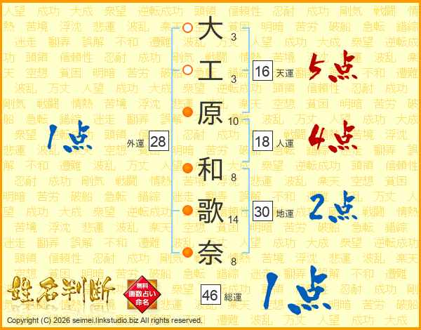 大工原和歌奈さんの総運は46画の1点!