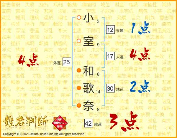 小室和歌奈さんの総運は42画の3点!