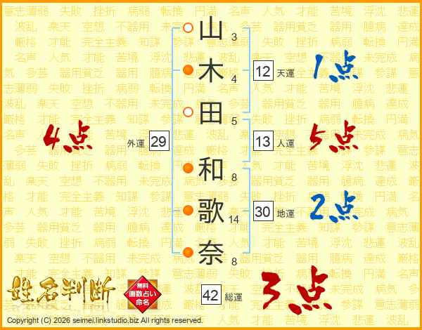 山木田和歌奈さんの人運は13画の5点!