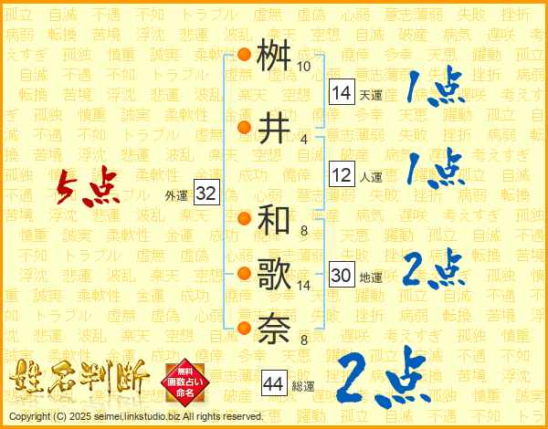 桝井和歌奈さんの外運は32画の5点!