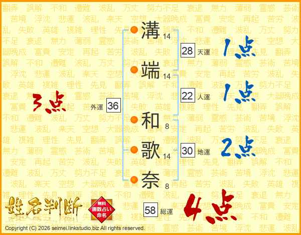 溝端和歌奈さんの総運は58画の4点!