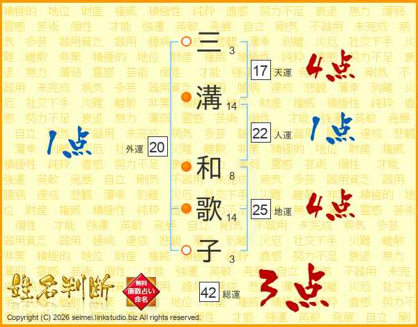 三溝和歌子さんの総運は42画の3点!