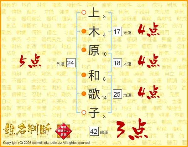 上木原和歌子さんの総運は42画の3点!