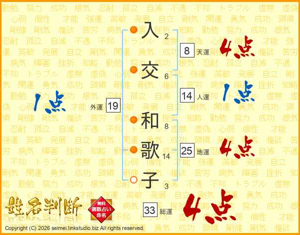 入交和歌子さんの総運は33画の4点!