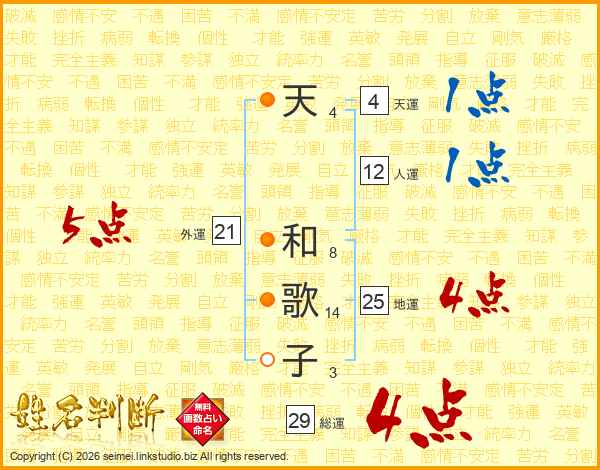天和歌子さんの総運は29画の4点!