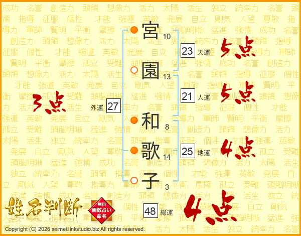 宮園和歌子さんの総運は48画の4点!