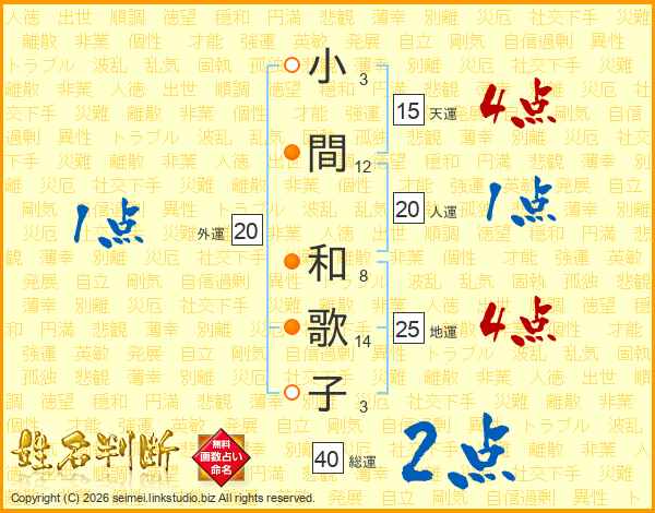 小間和歌子さんの総運は40画の2点!