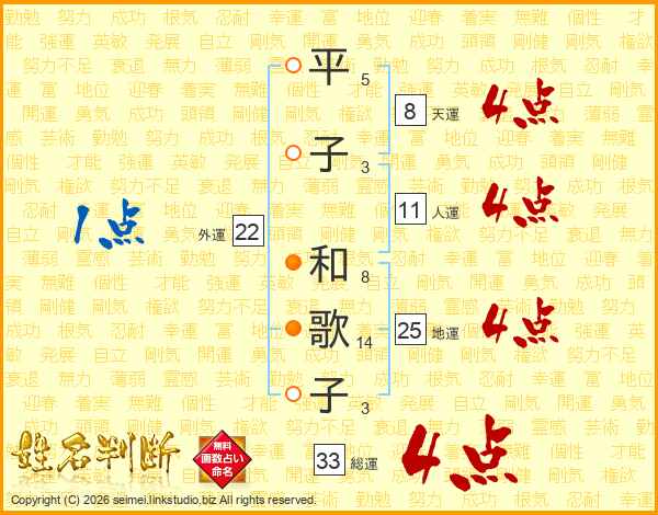 平子和歌子さんの総運は33画の4点!