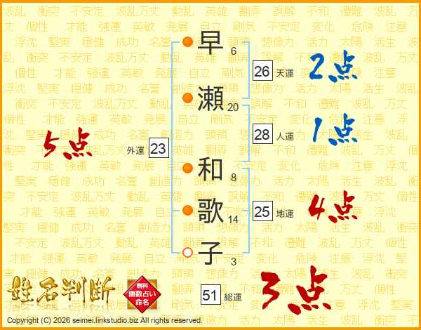 早瀬和歌子さんの総運は51画の3点!