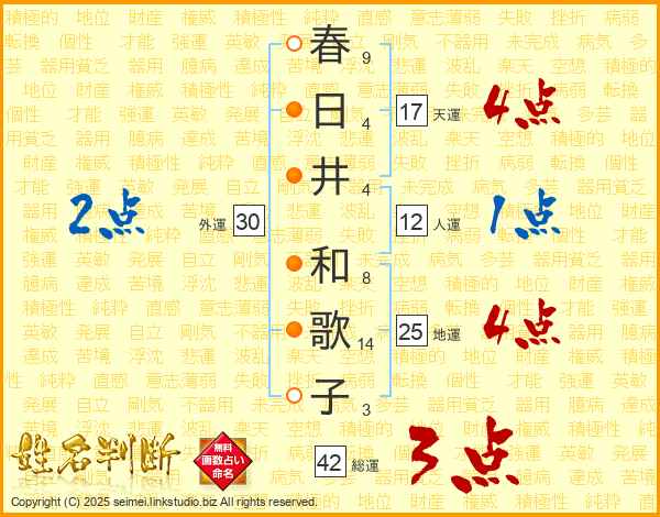 春日井和歌子さんの天運は17画の4点!