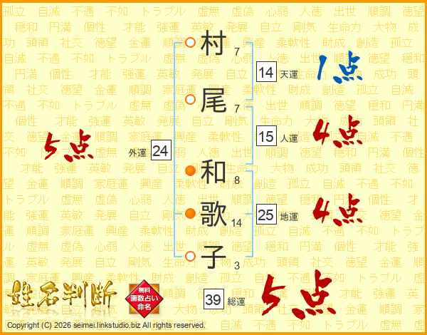 村尾和歌子さんの総運は39画の5点!