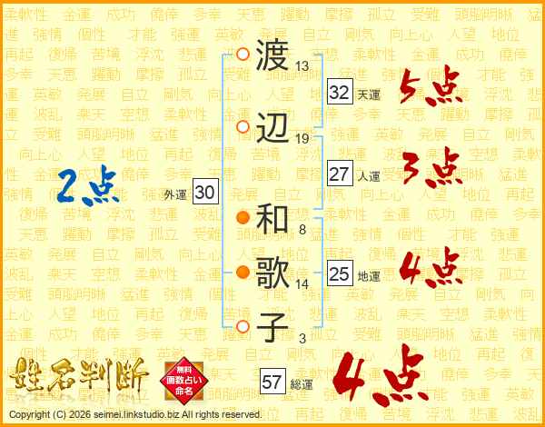 渡辺和歌子さんの総運は57画の4点!