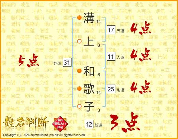 溝上和歌子さんの総運は42画の3点!