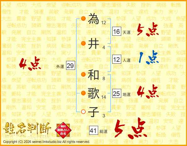 為井和歌子さんの総運は41画の5点!