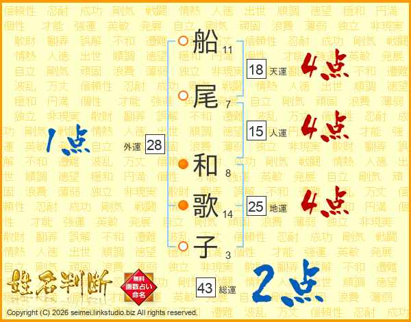 船尾和歌子さんの地運は25画の4点!