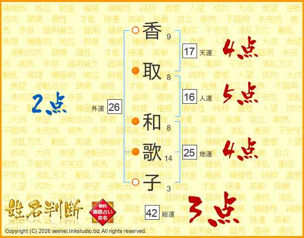 香取和歌子さんの総運は42画の3点!