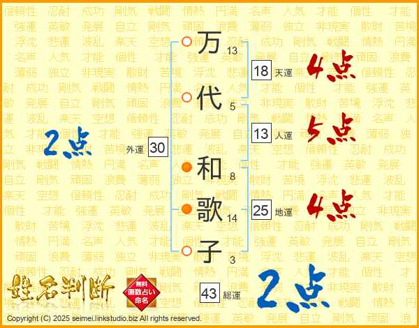 万(13画)代(5画) 和(8画)歌(14画)子(3画)